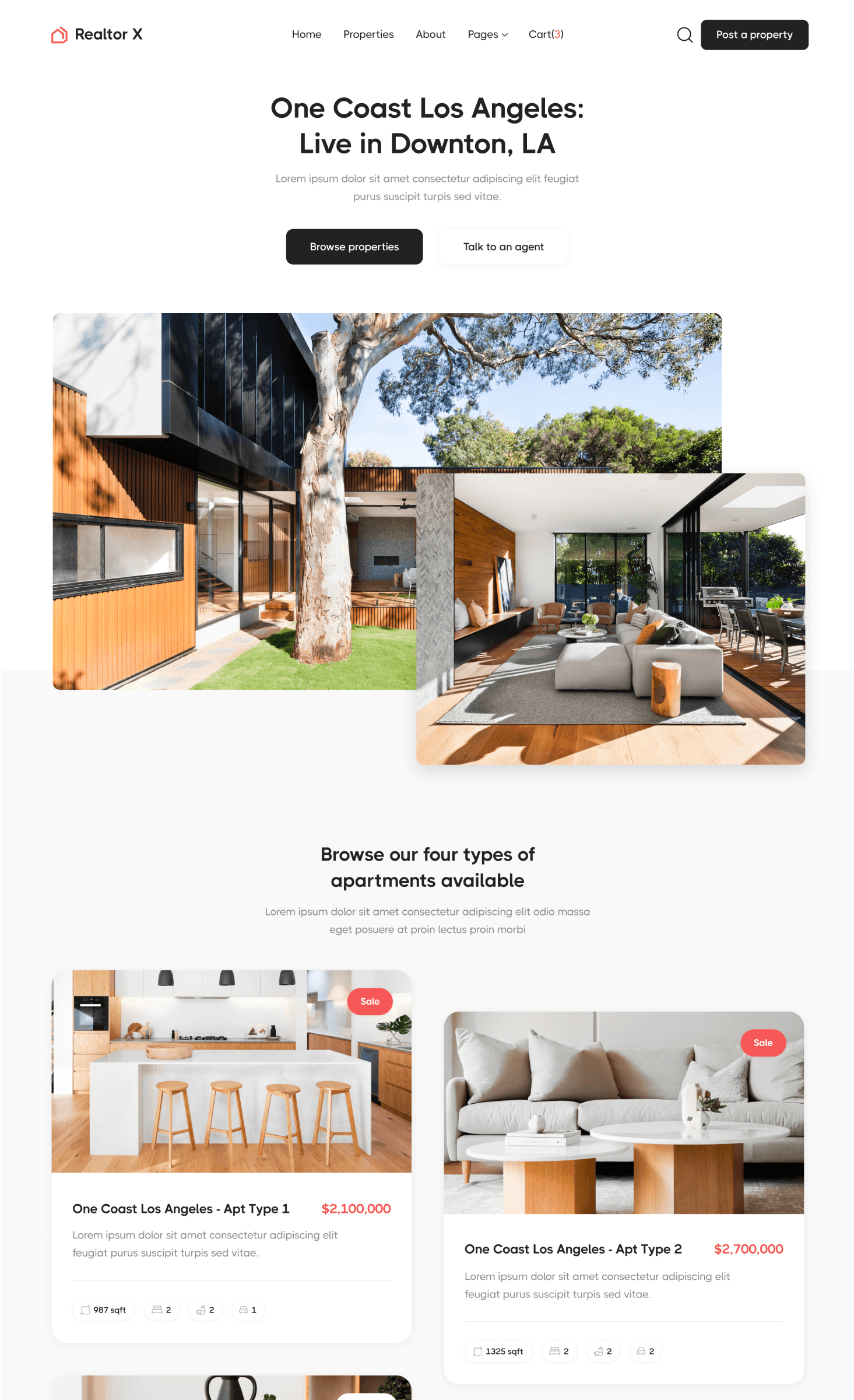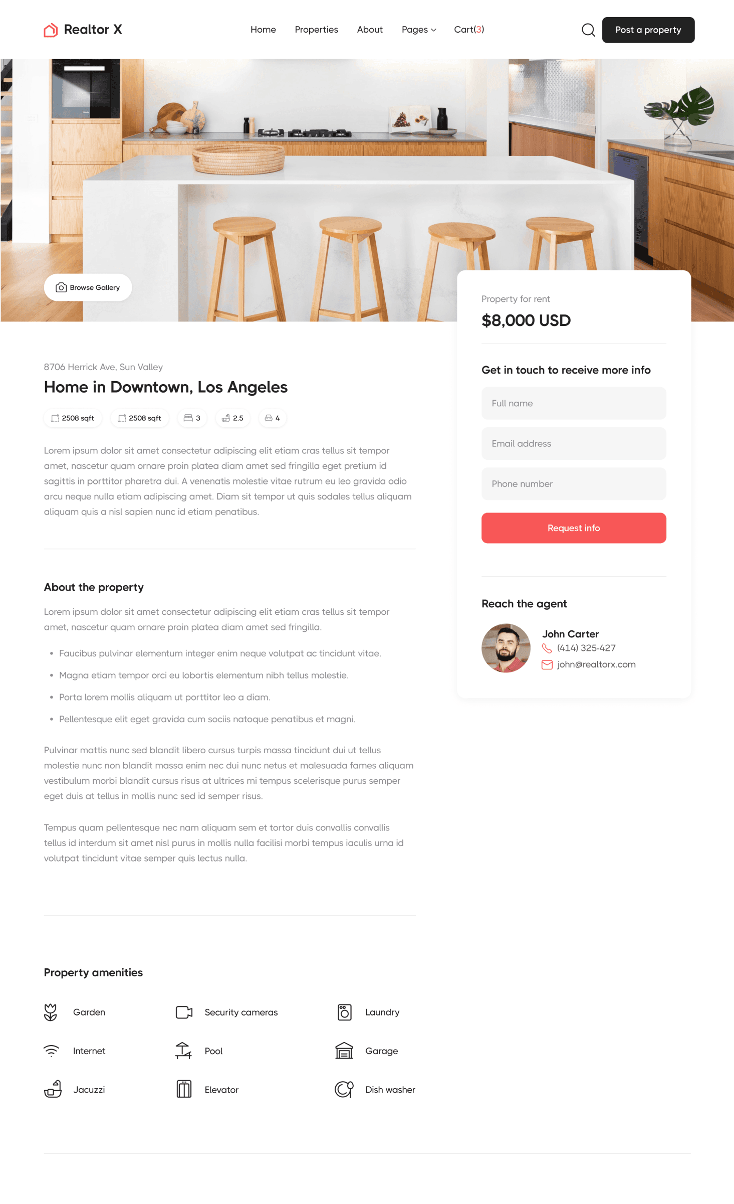 Realtor X Framer Template includes over 35 pages in total, with more than 60 sections, and 3 different home pages, 3 blog pages, and 3 contact pages.